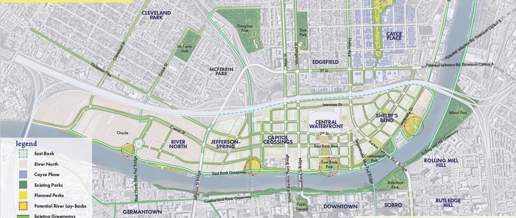 The East Bank will be Nashville’s front porch to the river for the next 100 years. The development is big enough, visible enough, and important enough that it deserves a regional mobility vision, not a neighborhood-only traffic plan.
