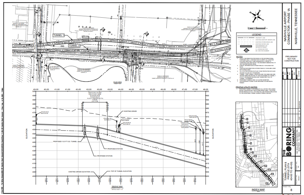 The plans show three station or portal locations in this initial segment: one near the State Capitol, one at the Convention Center, and one at the southern end of the route. However, the documents note that station permitting will require separate approval, and The Boring Company has indicated publicly that it hopes to build as many as 20 stations citywide as the Music City Loop expands.