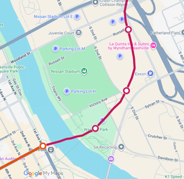 After passing under the northeast corner of the stadium site, the alignment could continue beneath state-owned rights-of-way. This approach would avoid private property complications and create a streamlined path into East Nashville. Such a connection would give the broader neighborhood a direct link into the Music City Loop, reducing trip times and improving access to downtown, North Capitol, Midtown, and the West End.